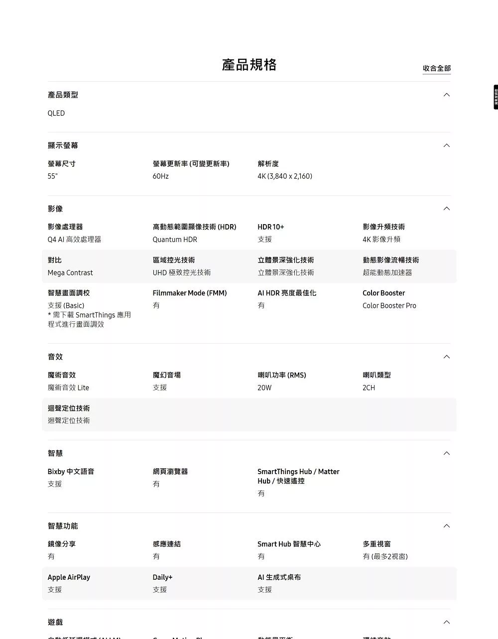 【限時優惠】Samsung 三星 55吋 QA55Q7FAAXXZW QLED Q7F 4K Samsung Vision AI 智慧顯示器 含桌放安裝+舊機回收