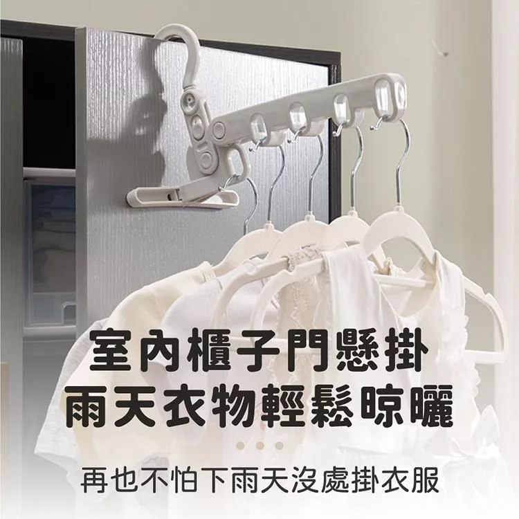 【E.dot】室內可調節夾扣六孔曬衣架