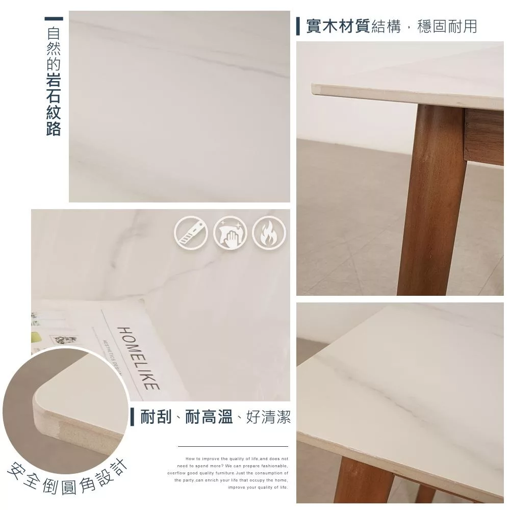 E-home 岩代4尺實木亮面岩板餐桌-兩色可選 原木色