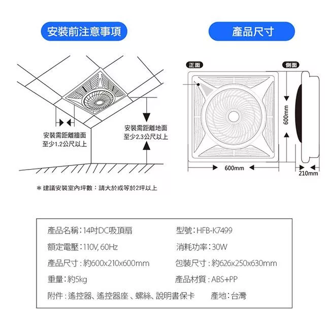 ◎全功能遙控器,風速、定時、智能風、擺頭、負離子、氣氛燈(藍光氣氛小夜燈)