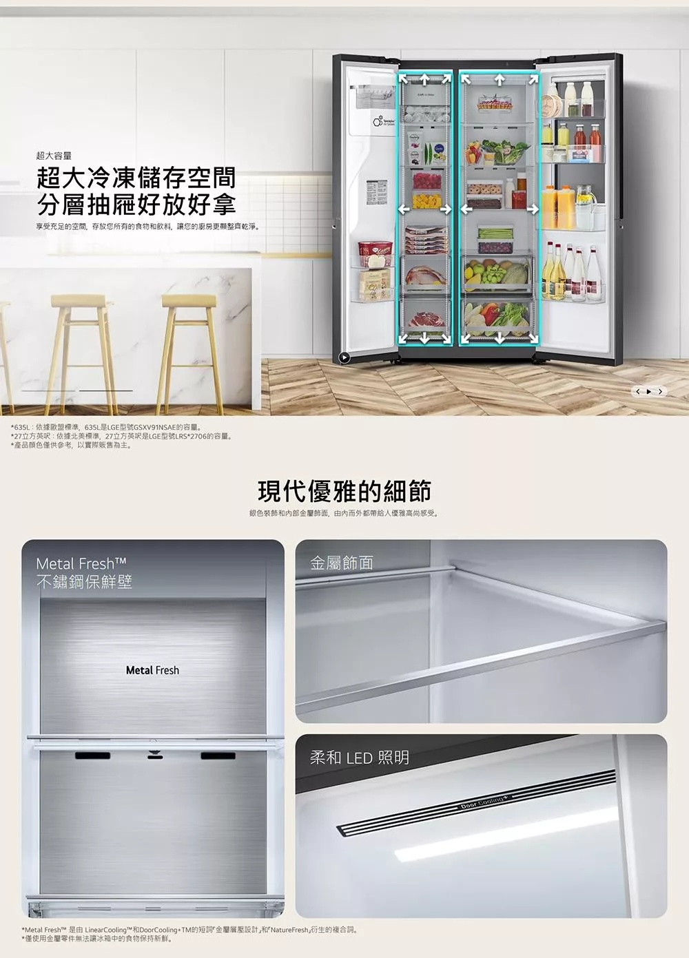 ◆ 新一代 InstaView Door-in-Door™敲敲看門中門,可視範圍加大23%,輕敲兩下即可看到內部空間。
