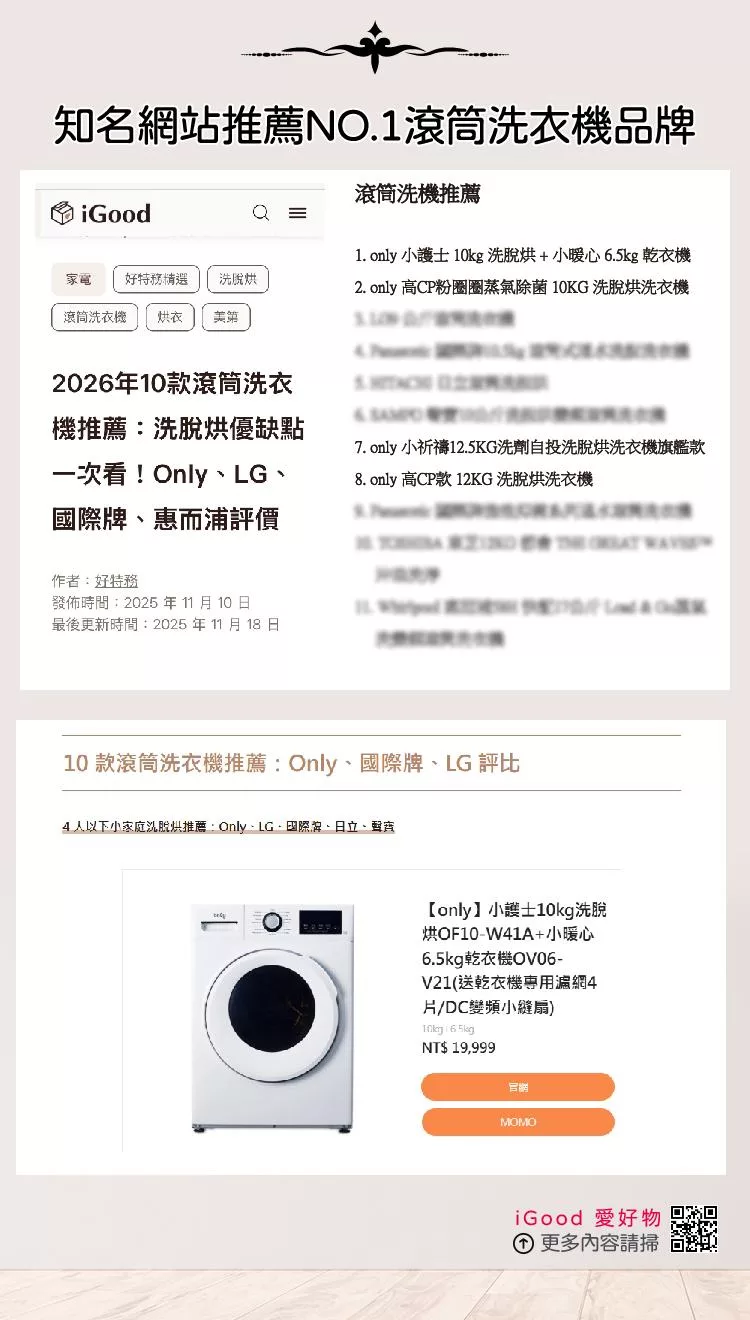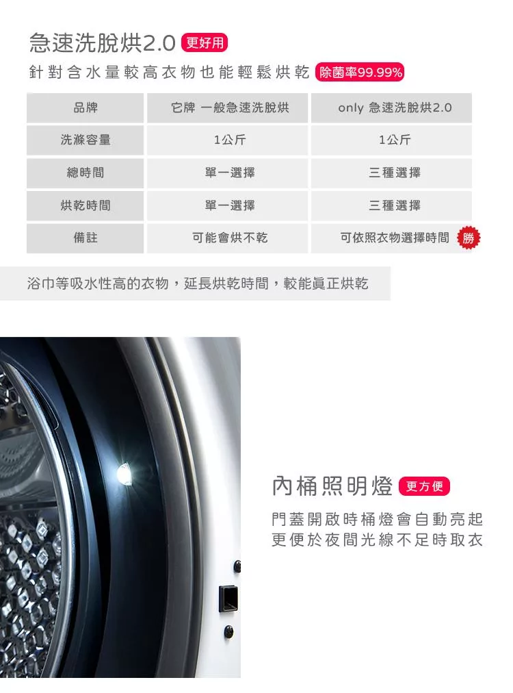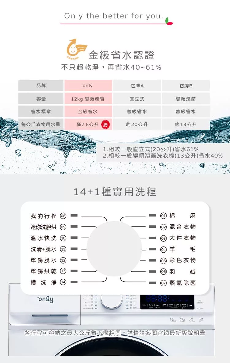 1/29保證年前到貨~要買要快【only】蒸氣除菌10KG洗脫烘洗衣機OF10-W01(省水/10公斤/變頻滾筒)