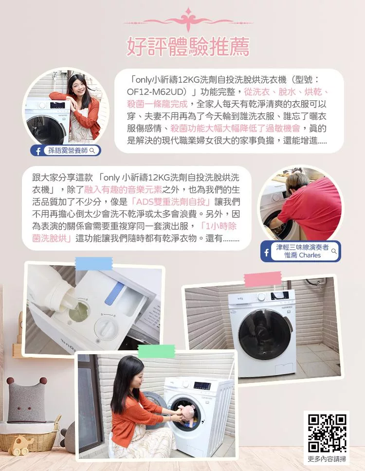 1/29保證年前到貨~要買要快 only小護士10kg急速滅菌洗脫烘OF10-W32A(金級省水10公斤變頻蒸氣活氧滾筒洗衣機/電子衣櫥功能)