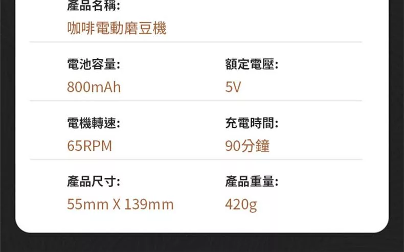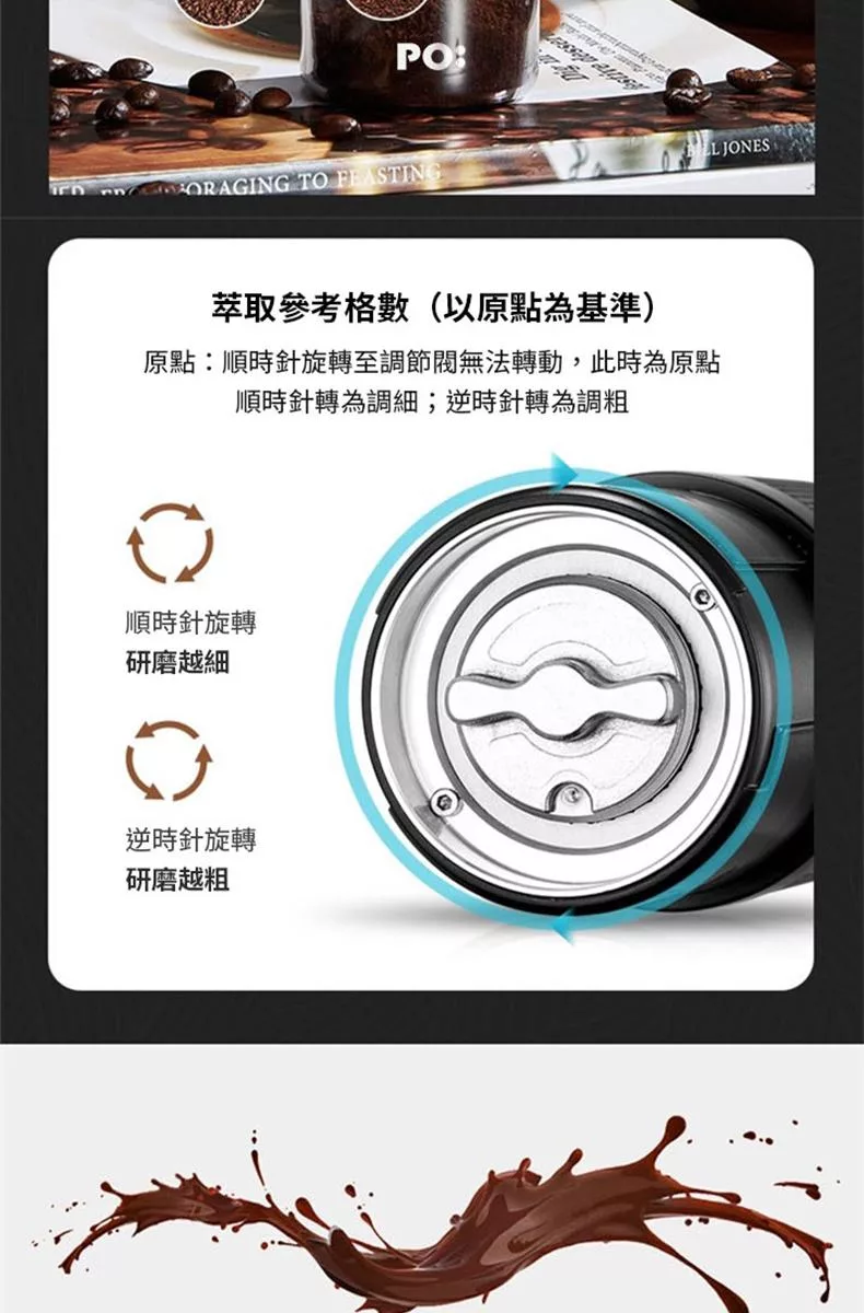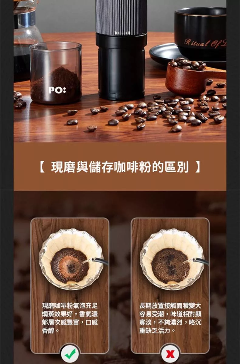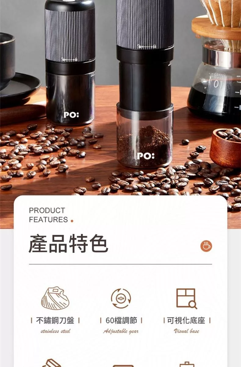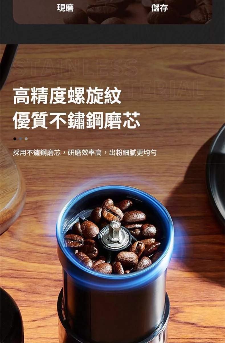 USB充電,免除充電煩惱,耐用不鏽鋼研磨刀盤,研磨效果卓越,多達60段可調研磨粗細,打造完美咖啡