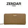 【ZENDAR】台灣總代理 限量1折 頂級小羊皮荔枝紋拉鍊皮夾 佩姬系列 全新專櫃展示品 奶茶色
