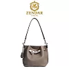 【ZENDAR】台灣總代理 限量1折 頂級小牛皮水桶包肩背包 奥菲系列 全新專櫃展示品 大象灰