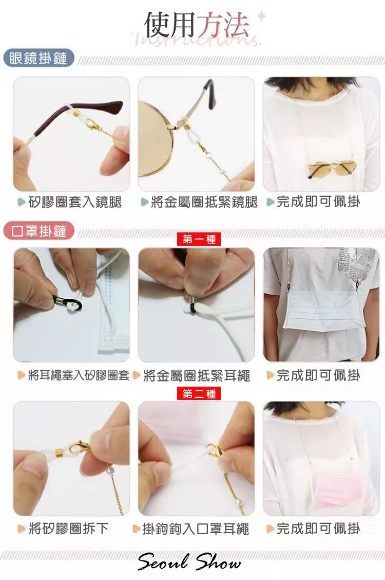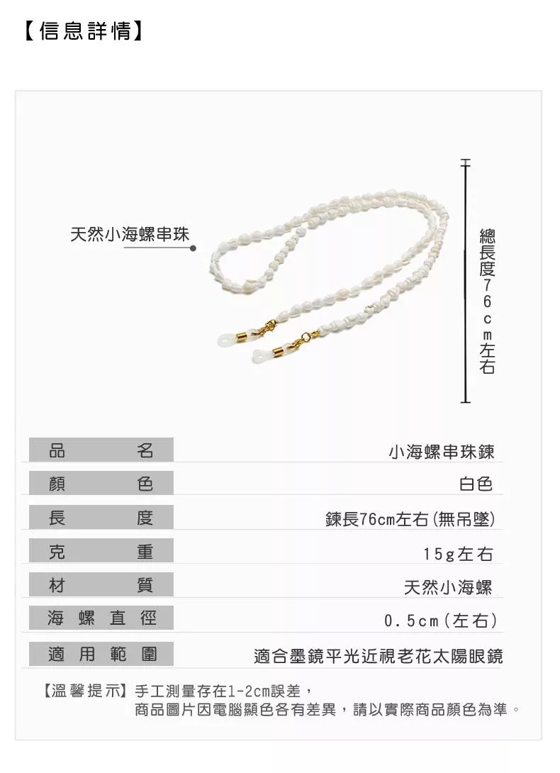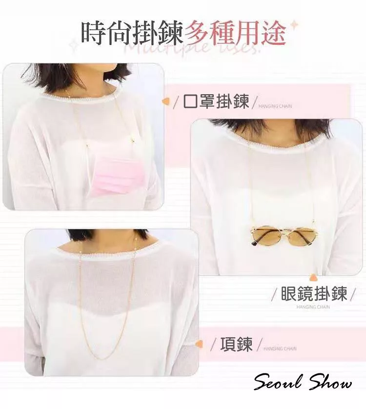 seoul show首爾秀 小海螺串珠兩用口罩掛繩鏈墨鏡平光眼鏡鍊老花近視防丟鍊 白色