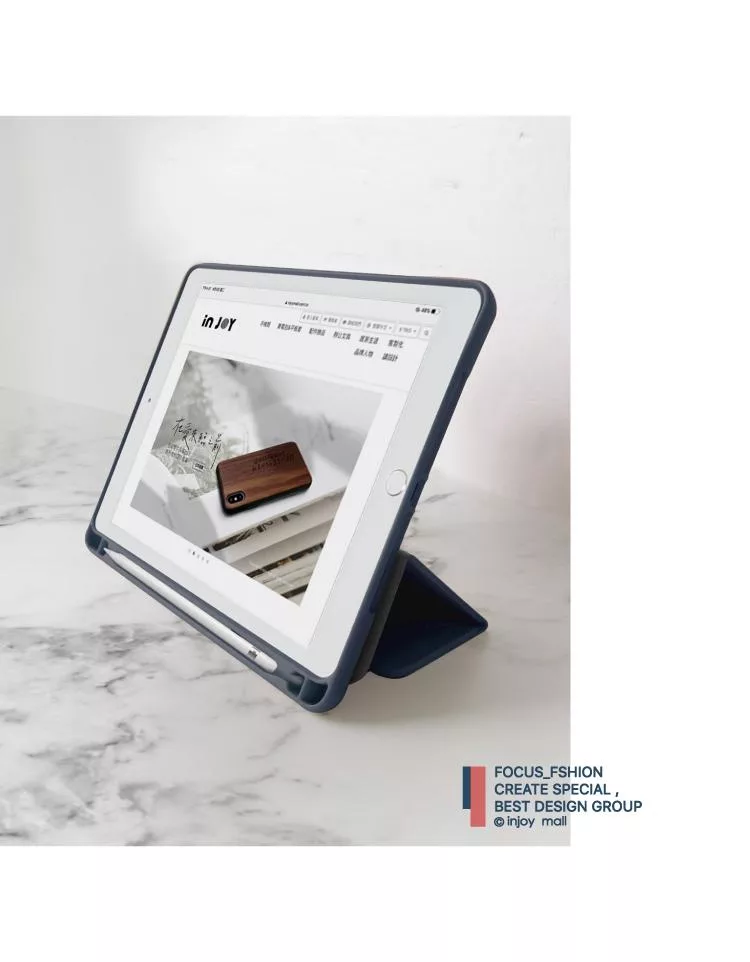 深藍 / 一體成形 Smart cover case (內側附筆槽收納 / 外側附筆槽支援吸筆充電)