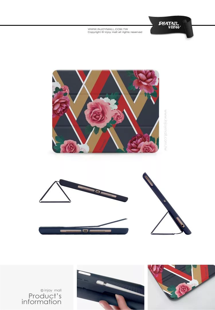[ iPad case 12.9/Air5/iPad 9/mini 6 時尚花朵 附筆槽平板保護套 ]