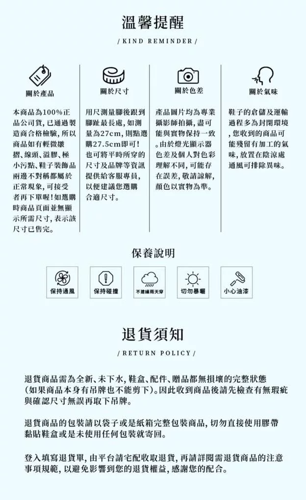 (1)鞋底磨損 (請於室內,軟墊上試穿SIZE)。