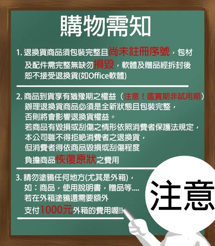 3.產品一經拆封、連線註冊後,均需額外收取退貨整新費用。