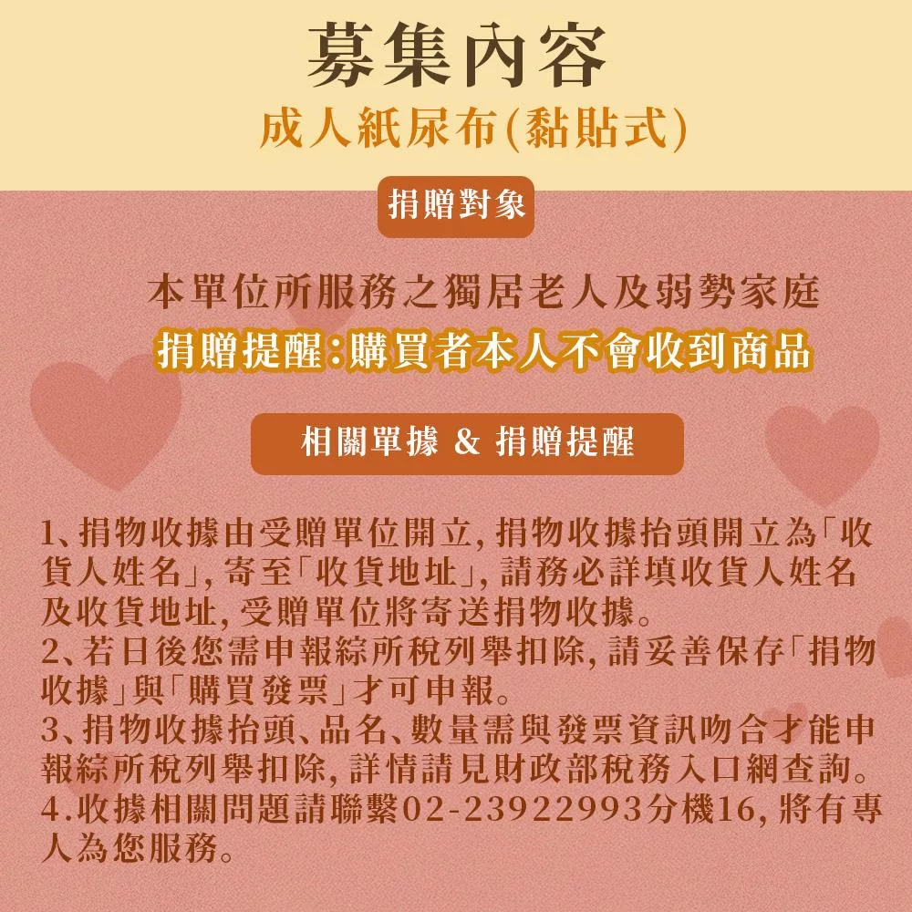 《雙福基金會x愛心募集》愛心成人紙尿褲募集(購買者本人不會收到商品)