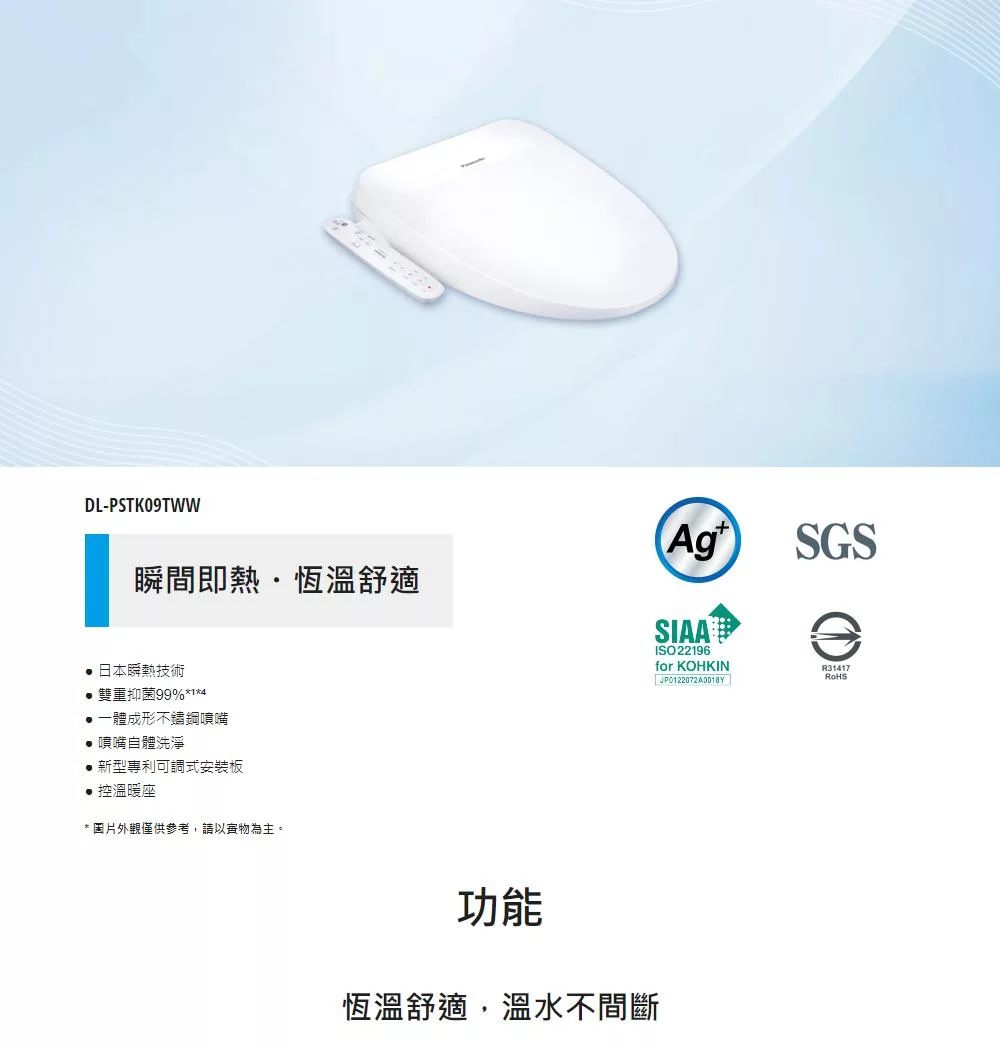 Panasonic 國際牌 瞬熱式溫水洗淨便座 DL-PSTK09TWW(含免費基本安裝)