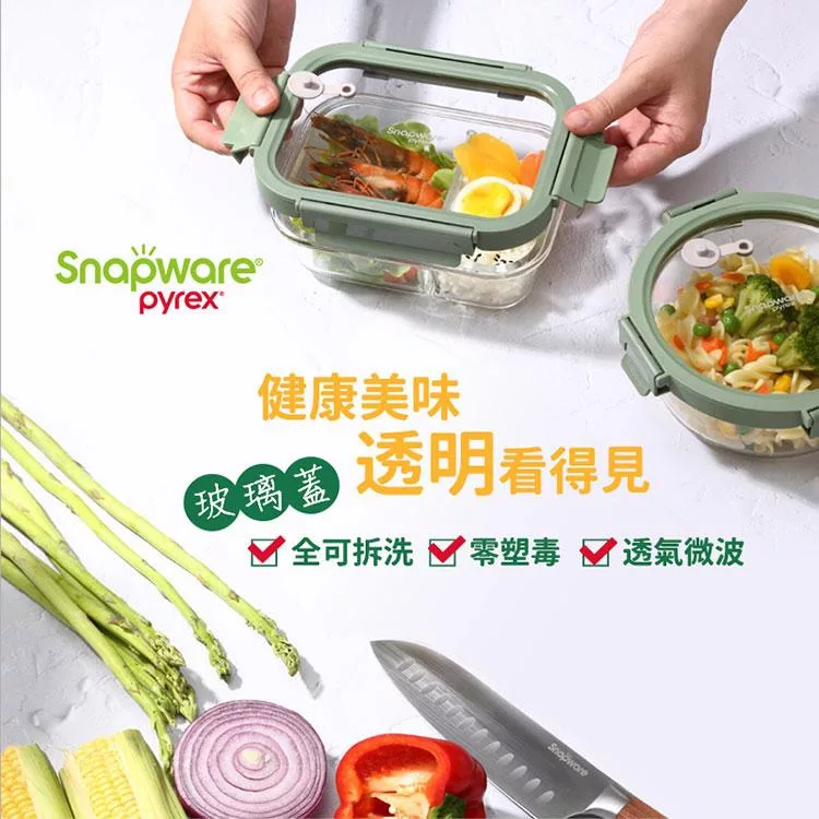 Snapware康寧密扣 耐熱玻璃保鮮盒 外食必備超值4件組 贈保溫提袋-隨機
