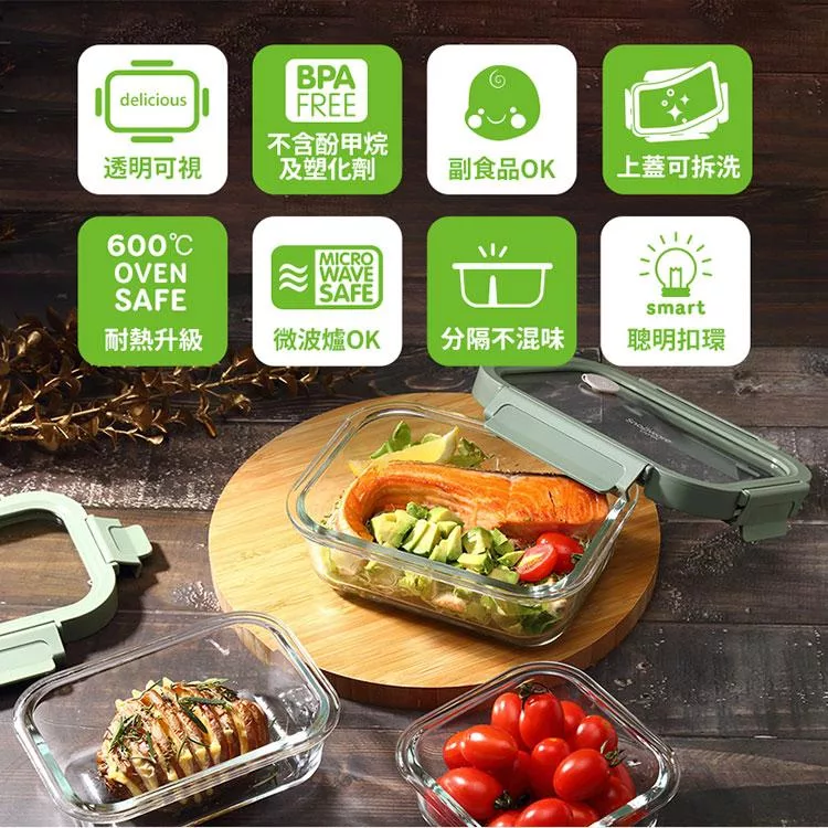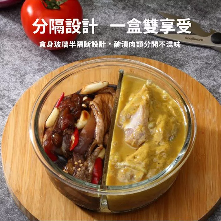 Snapware康寧密扣 長方形全可拆玻璃分隔保鮮盒- 640ml