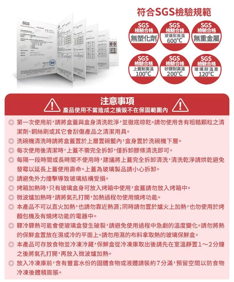 ※盒身-可用於冷凍櫃-20℃以內;可用於烤箱600℃以內