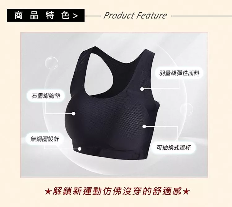 【太力】無鋼圈高強度防震前拉鏈運動內衣 無 黑色XL