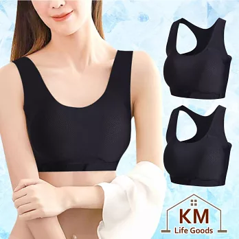 【KM生活】台灣製MIT頂級涼感天絲棉空氣感運動內衣/無鋼圈美背無痕內衣1入_2色任選 大碼 黑色大碼