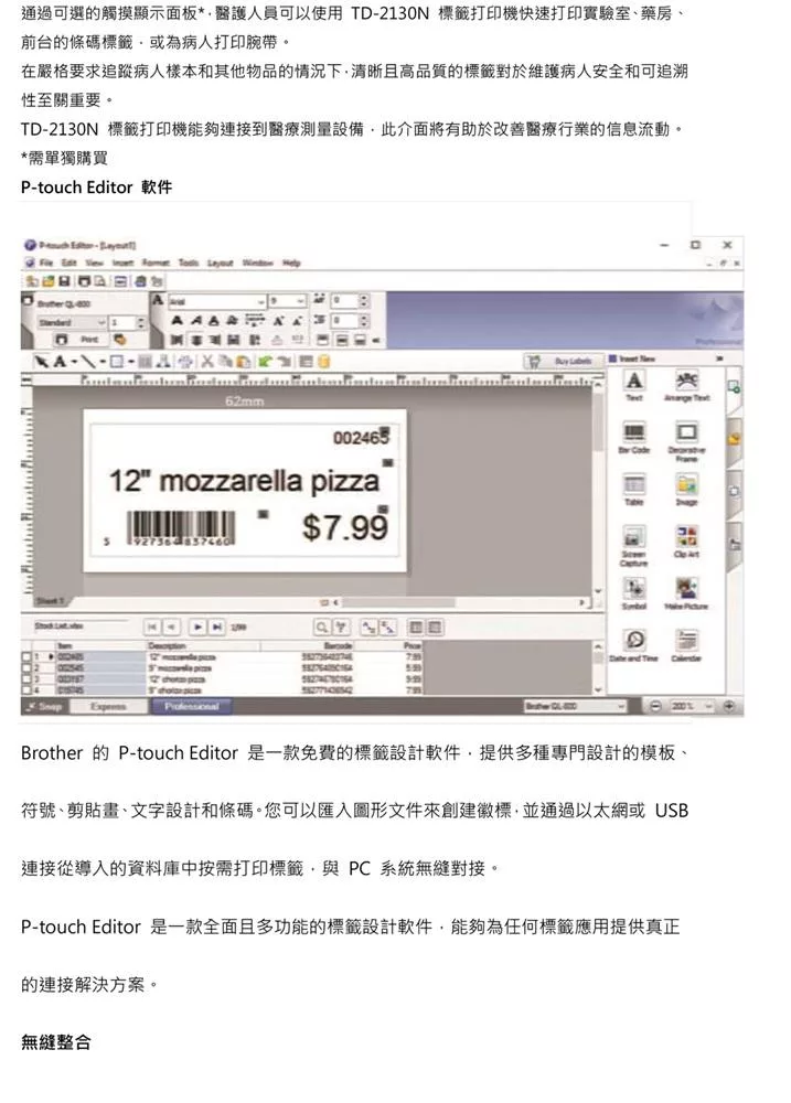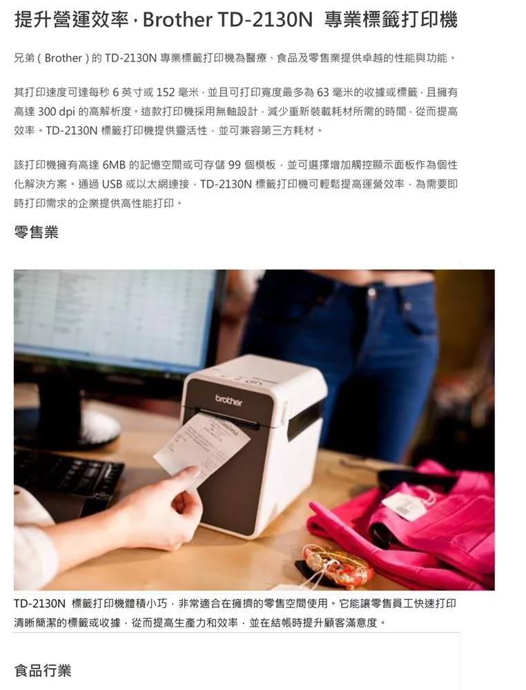 BROTHER兄弟牌 TD-2130N 熱感式網路型高速標籤列印機 公司貨