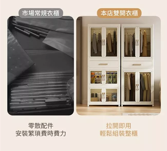 【好氣氛家居】50面寬雙開磁吸折疊三層收納櫃/2色可選 白框白門板