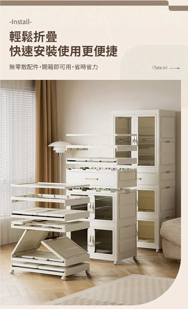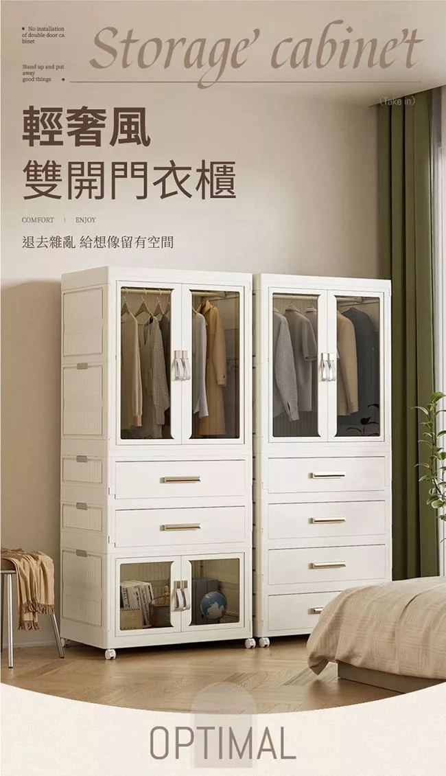 【好氣氛家居】60面寬雙開磁吸折疊三層收納櫃/2色可選 白框白門板