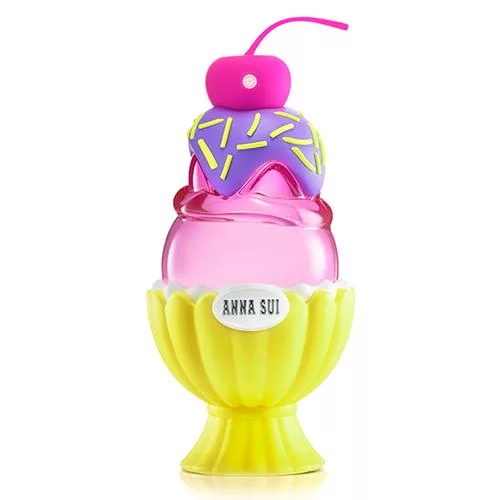 彷彿一個夢想成真的「冰淇淋聖代」遊樂場,將圍繞在遊樂園裡歡樂童趣的氛圍,鋪墊上童年記憶中「冰淇淋餐車」的復古元素。ANNA SUI果漾聖代淡香水將香水瓶身製作成聖代結構,裝飾上不同色系的精緻細節,融入前所未有的風格,包含流動的果醬以及立體的彩針糖,並將聖代標誌性的「櫻桃」設計成為無蓋式香水噴頭,造型搞怪吸睛,就連包裝盒都別具巧思,ANNA SUI將紙盒搖身一變成為冰淇淋桶,裝點著各式冰淇淋圖樣,一起編織女孩們甜蜜的仲夏回憶。