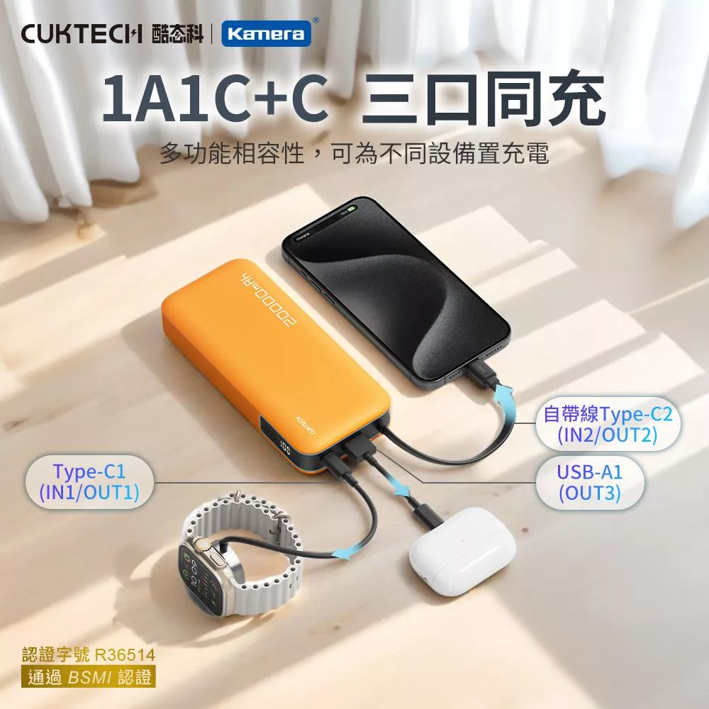3. 超大容量20000mAh:1A1C+C三口同充;可為手機充電3~5次以上,週末旅遊丶商務出差安心續航,滿足學生、上班族丶旅遊族不同場景的續航需求。