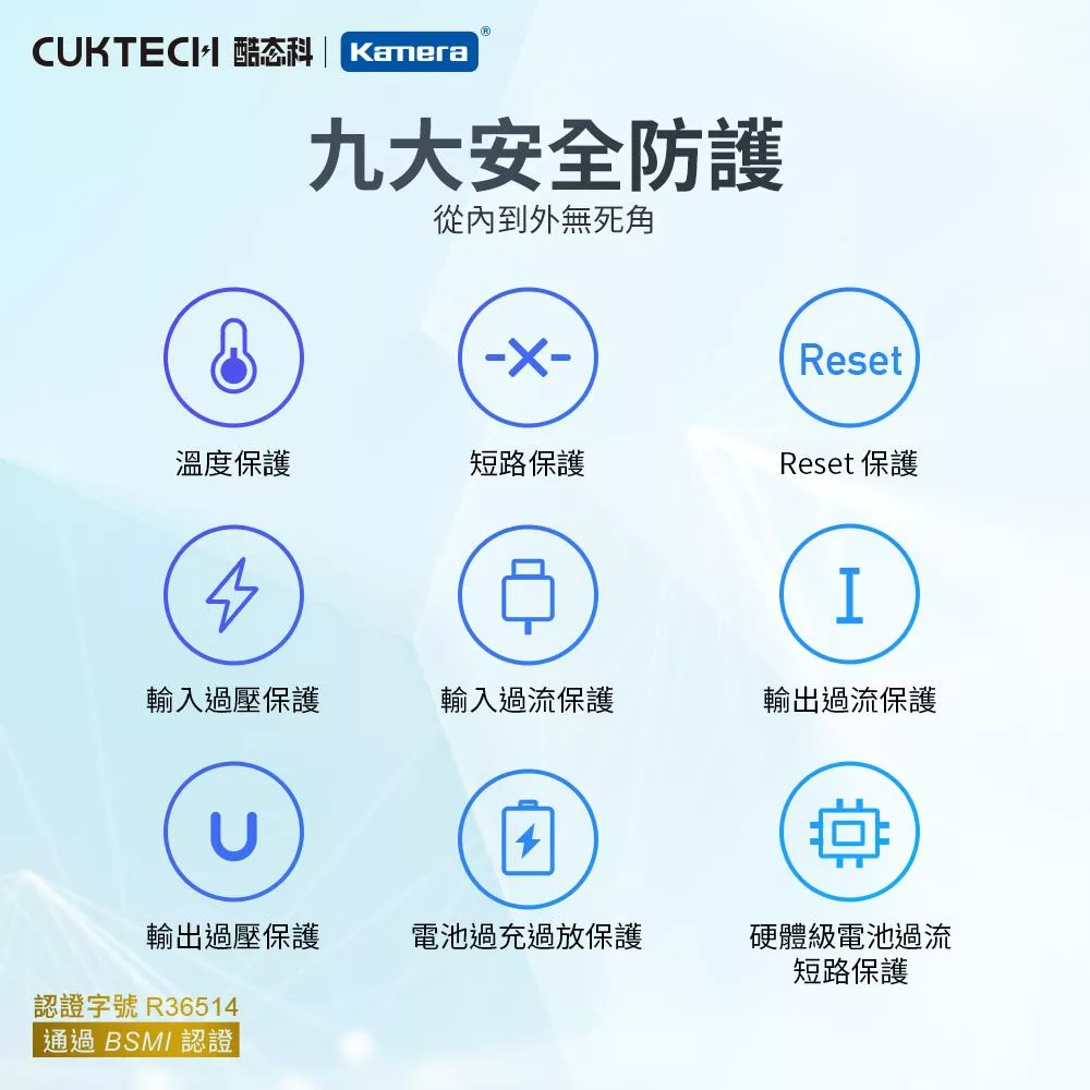 7. 智慧安全保護,使用更安心:多重安全防護設計,過充丶過放丶短路等完整防護,適用搭飛機(符合航空攜帶標準),符合旅遊族需求。