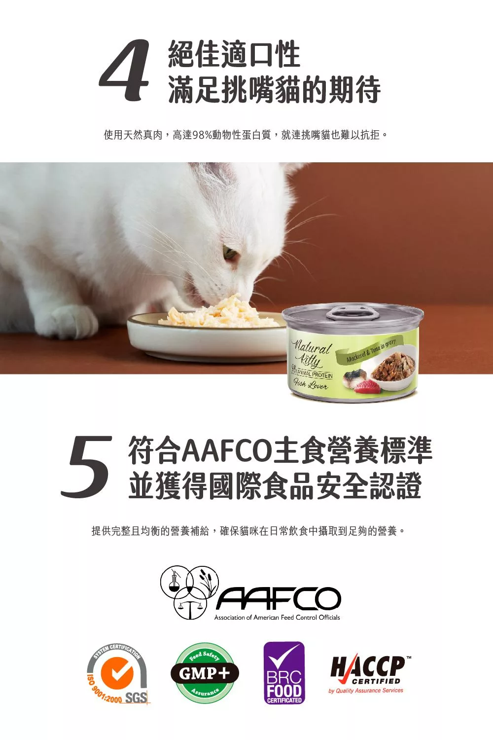 符合AAFCO每日主食營養標準,並獲得國際食品安全認證