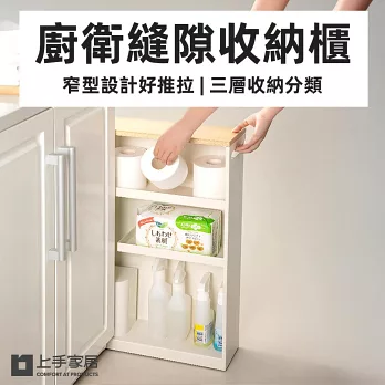 這款極窄收納櫃,專為家中尷尬角落設計,13cm 寬度剛剛好塞進櫃旁、馬桶邊、洗衣機夾縫。三層收納空間分類好拿,底部滾輪滑順移動,小朋友也能輕鬆推拉,從此不再浪費一絲收納空間。