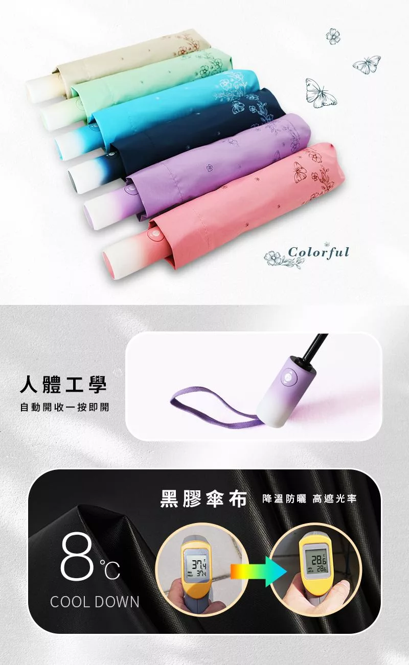 【德國boy】抗UV三折輕收防曬自動傘_ 雪精靈山雀