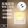 TheLife嚴選 雙USB供電孔紅外線感應燈小夜燈2入-插頭式 黃光