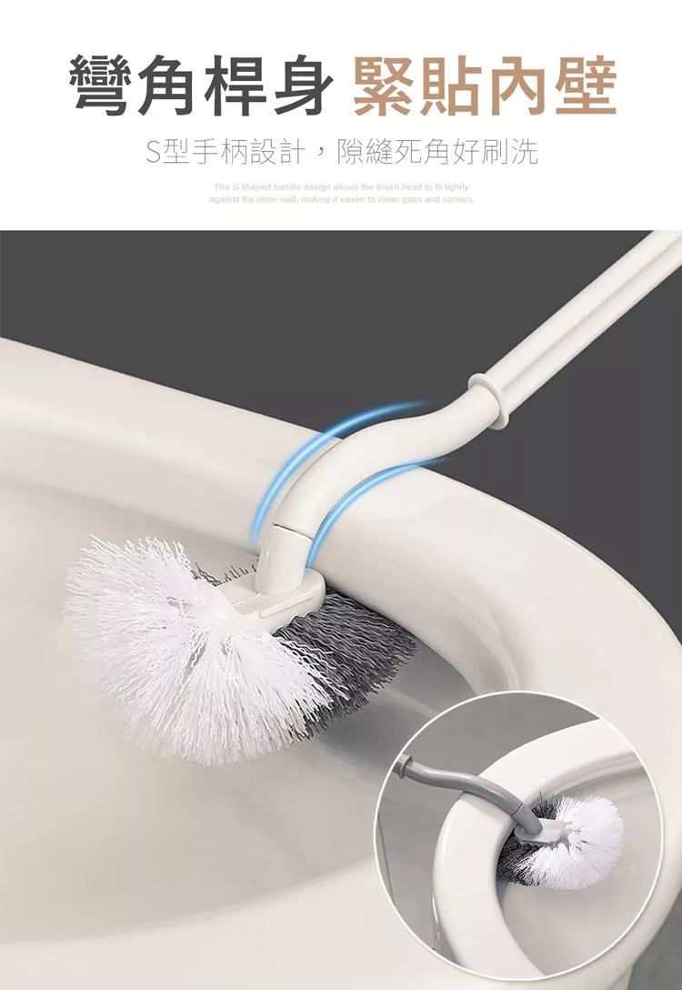 【E.dot】軟硬毛S型無死角馬桶刷 白色