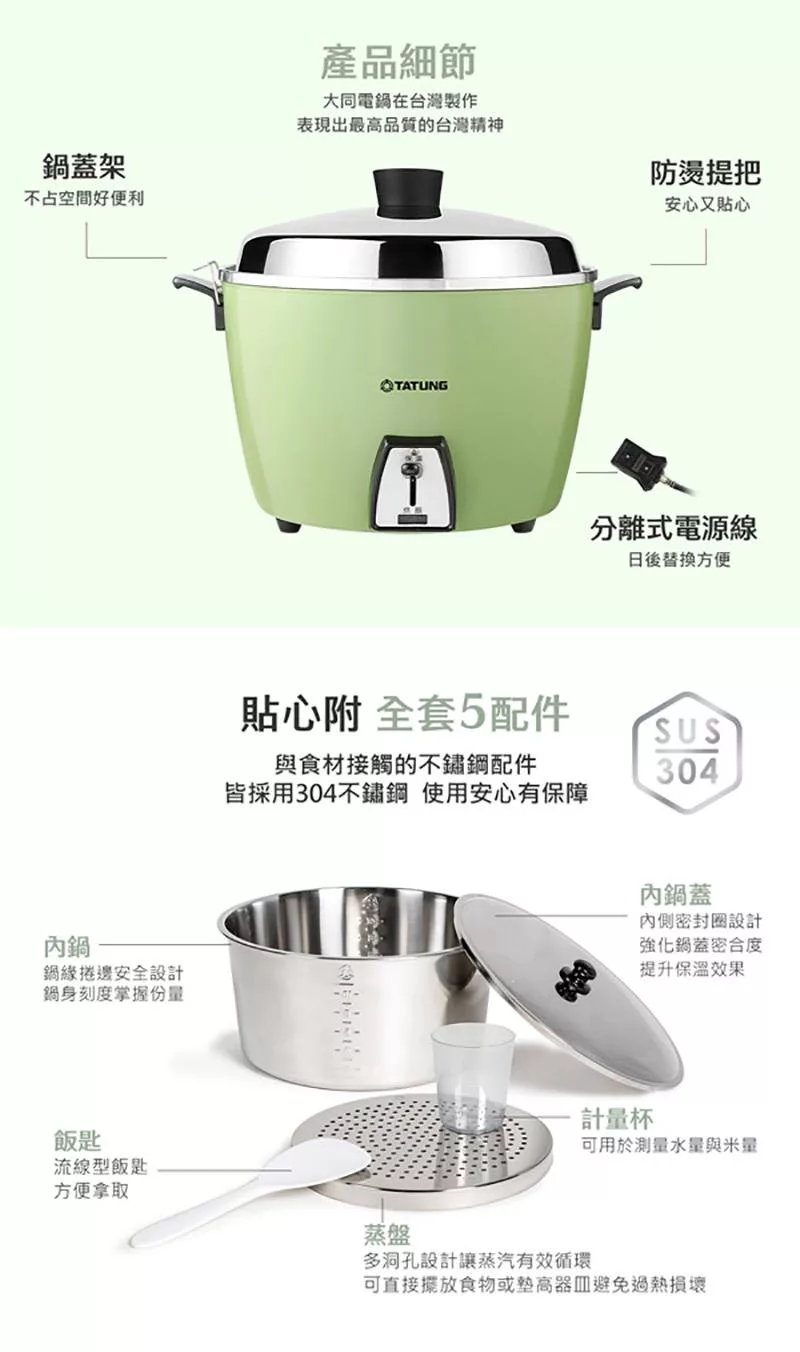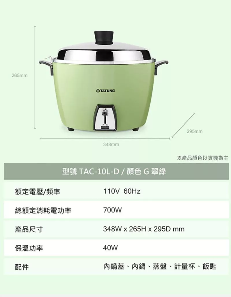 TATUNG大同 10人份 電鍋 TAC-10L-DG 翠綠色