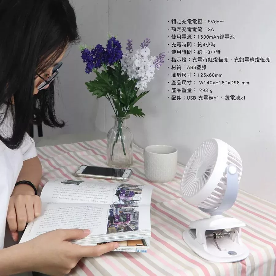 USB插電式5吋風扇桌上型可夾式多功能循環涼風扇 白色