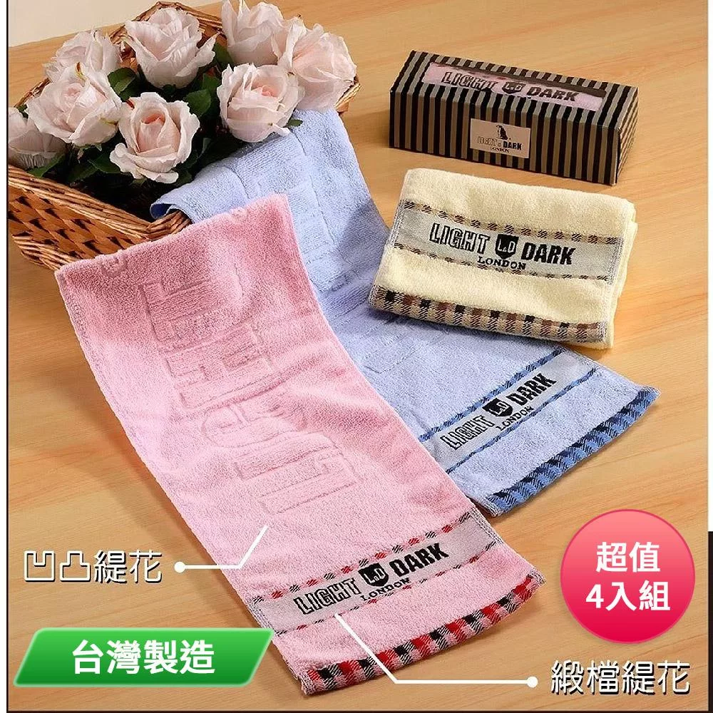 LIGHT&DARK 格紋緹花運動毛巾1入禮盒(顏色隨機) LD301 台灣製 超值4入組