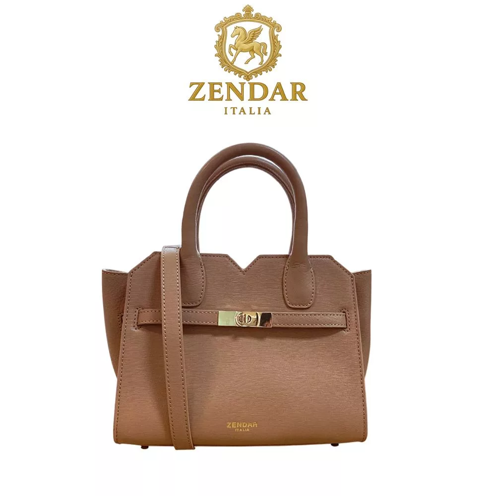 【ZENDAR】台灣總代理 限量1折 頂級小牛皮肩背包 莉娃系列 全新專櫃展示品 咖啡色