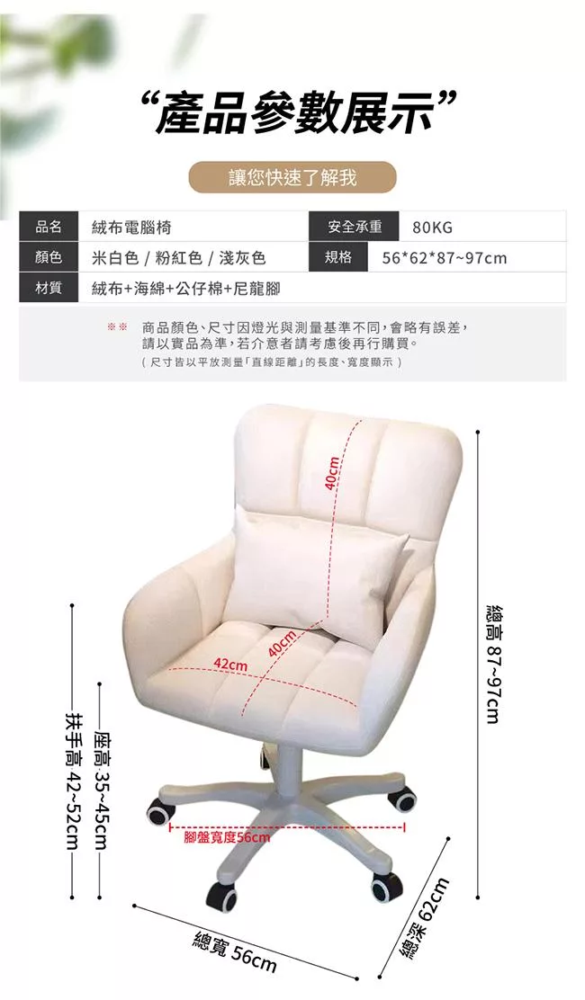 【好氣氛家居】軟綿絨布飽滿包覆電腦椅/三色可選 淺灰色