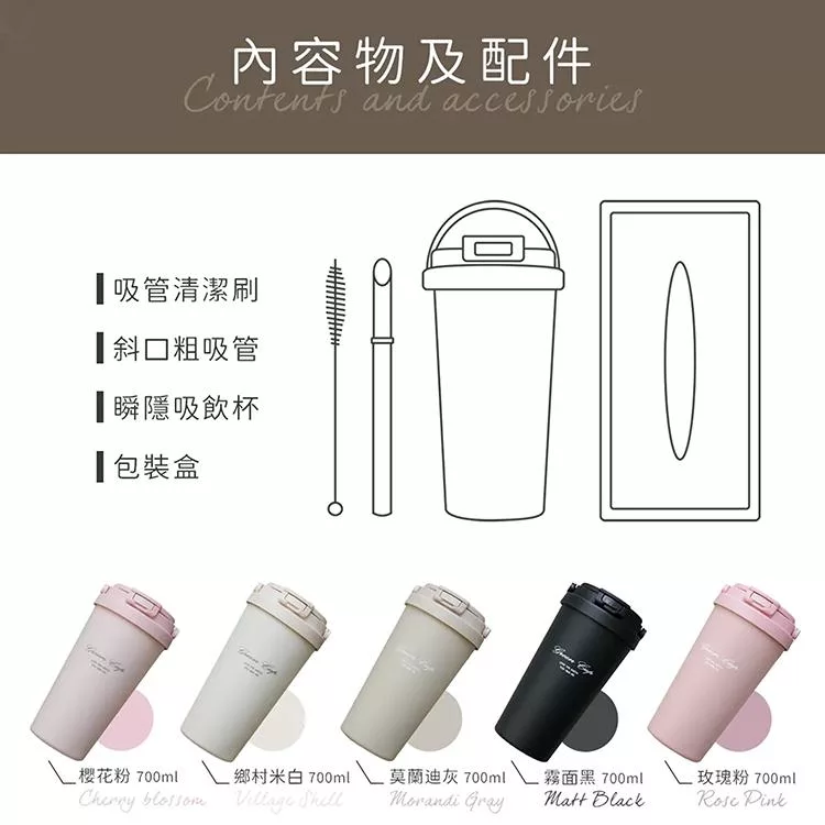 讓您可以輕鬆享受一杯美味的咖啡或茶,讓生活更加美好,SGS檢驗合格使用安心,瓶身內外層採用304不鏽鋼+陶瓷塗層材質,不挑飲品,不易殘留異味,大口徑容易清洗,污垢不易殘留,雙層真空鍍銅技術,保溫保冷效果長效,底部止滑設計,不易滑動,不怕刮傷,無論是在家裡、上班、上學、野外登山、郊遊旅行皆適用,造型優美時尚,攜帶方便,輕鬆帶出門,直飲口+吸管飲獨特的雙飲設計,讓您可以隨時隨地享受熱飲或冷飲。