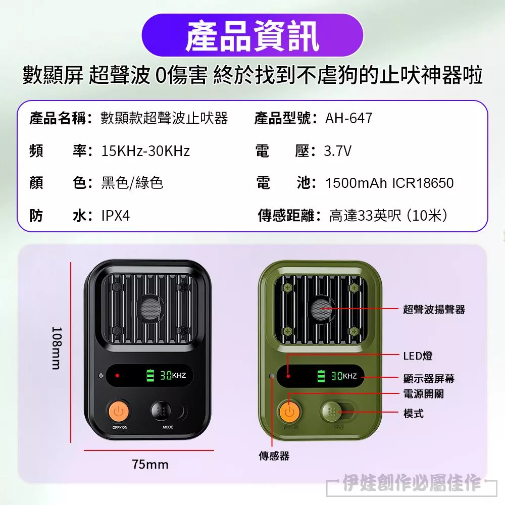 數顯款超聲波止吠器 綠色