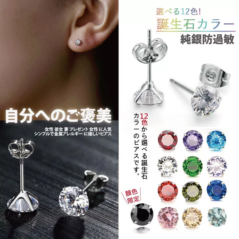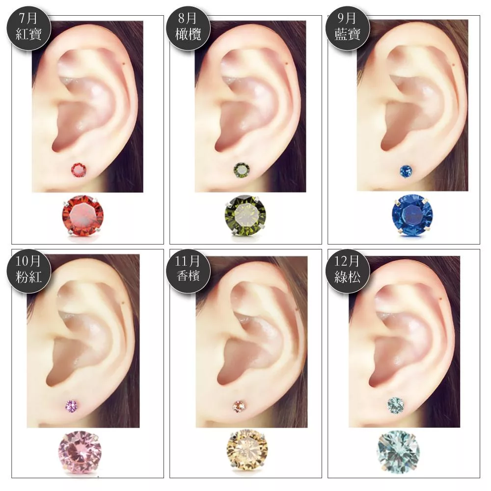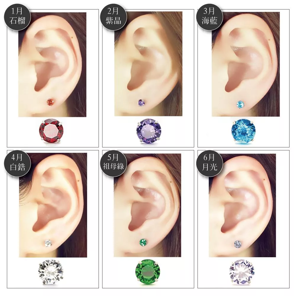生日石彩色耳環有 12 種顏色可供選擇。
