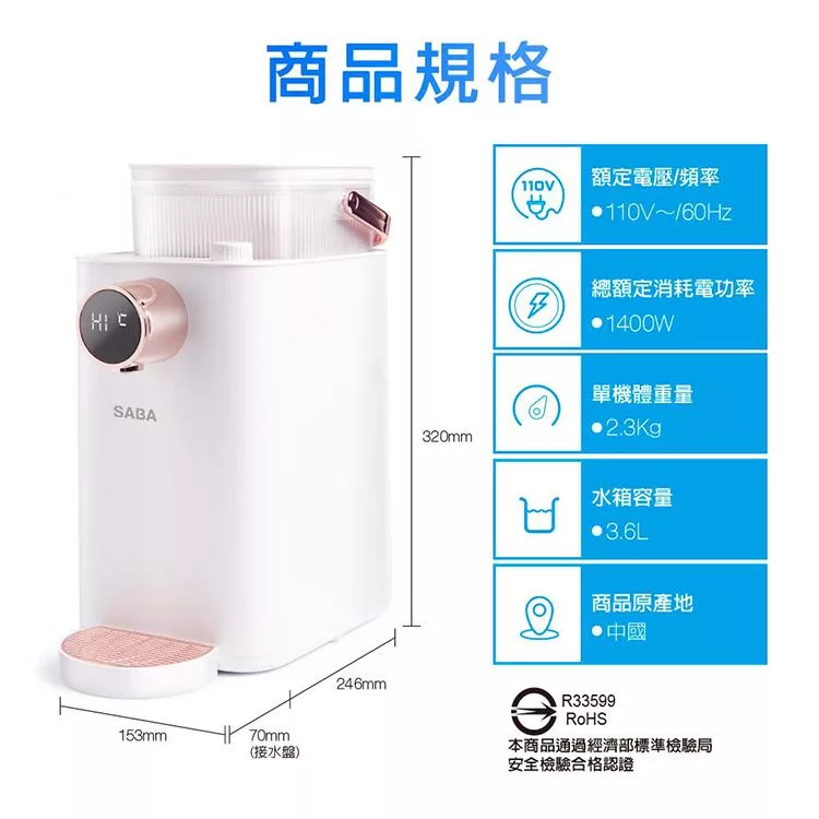 【德國 SABA】3.6L即熱式濾淨開飲機(SA-HQ07)
