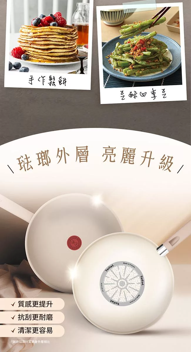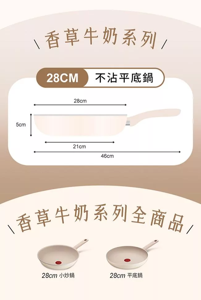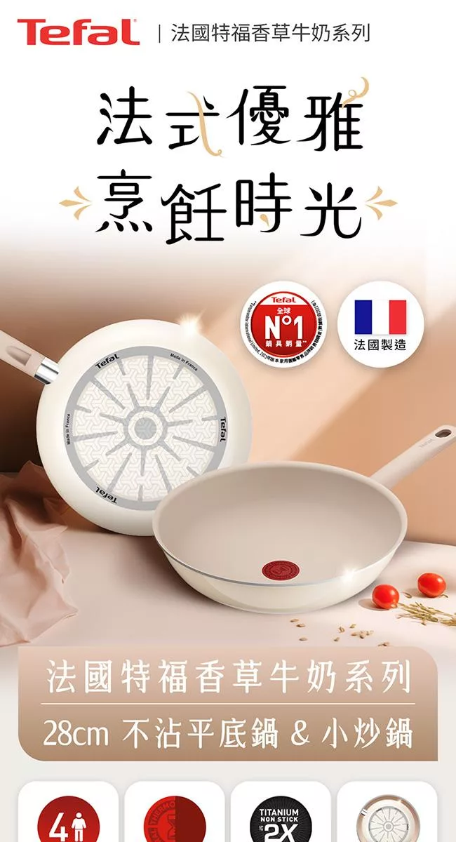 Tefal法國特福 香草牛奶系列28CM不沾平底鍋+玻璃蓋