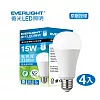EVERLIGHT 億光15W環保節能標章球泡燈 4入 白光