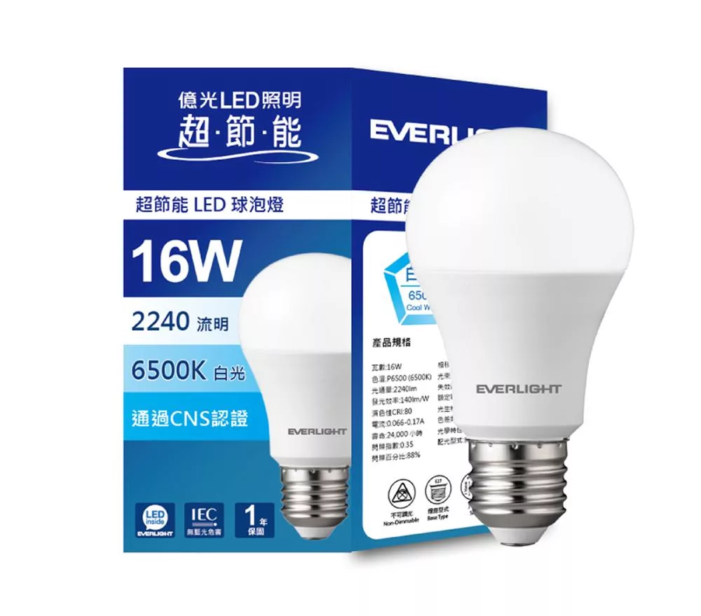 EVERLIGHT 億光15W環保節能標章球泡燈 4入 白光
