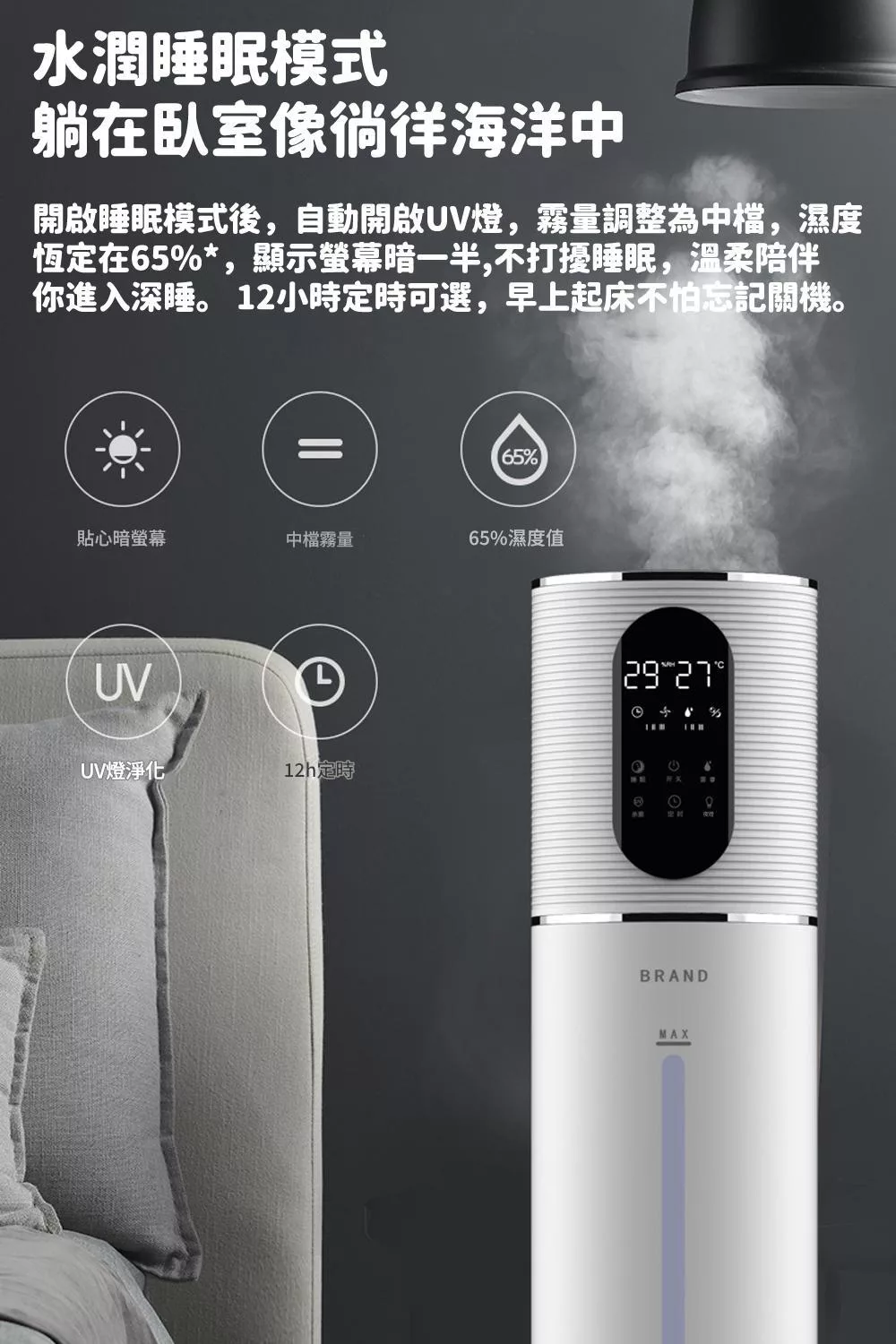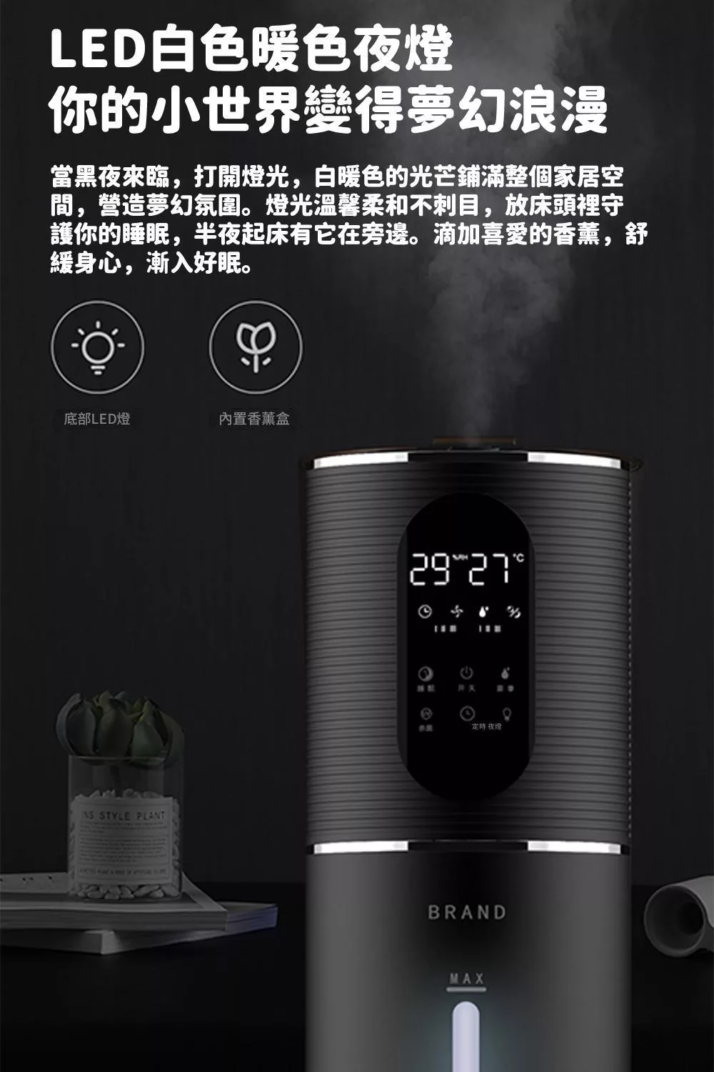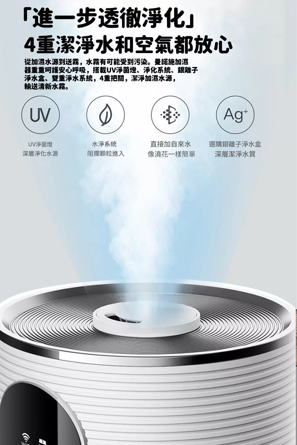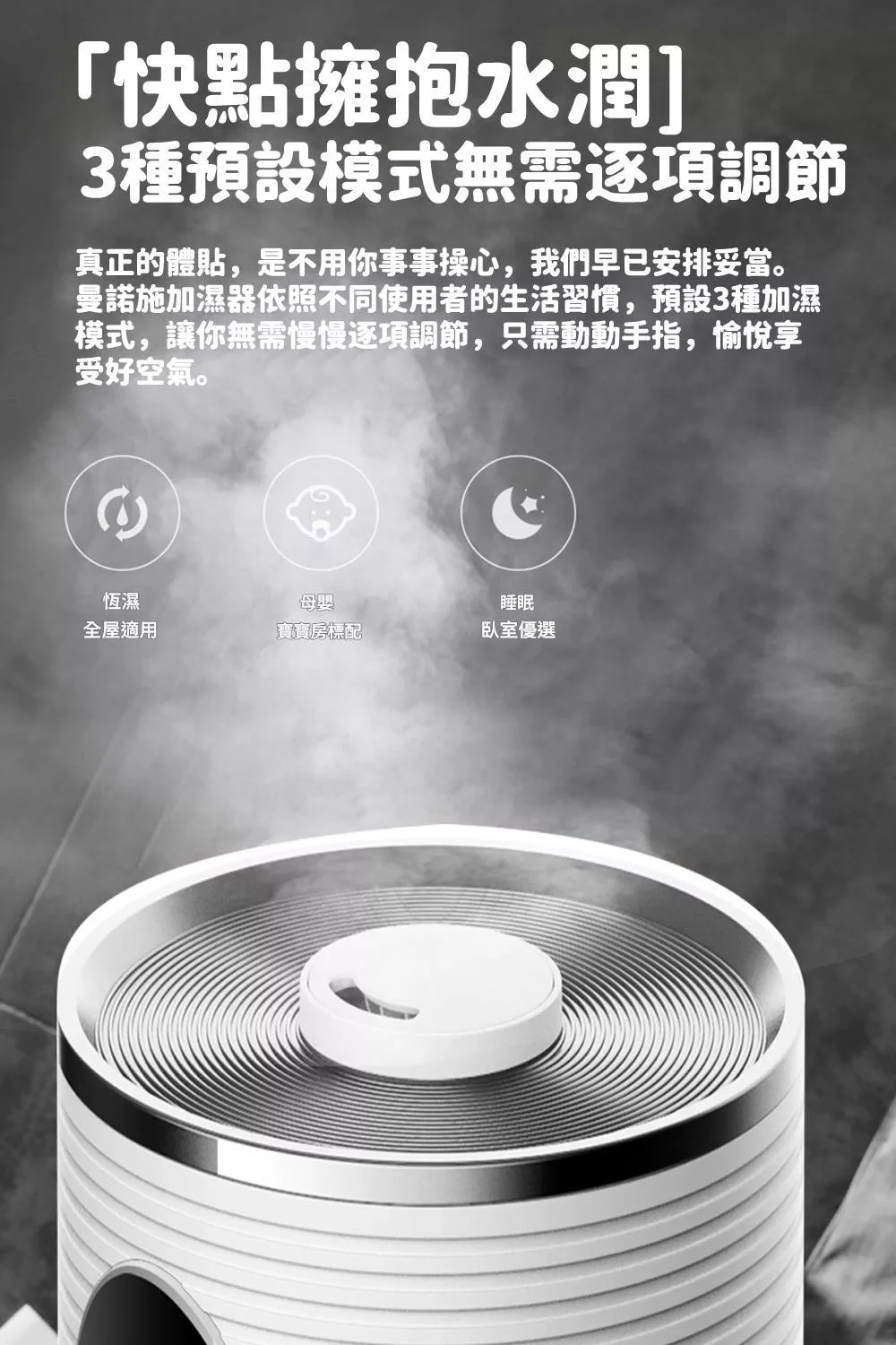 【H2O】療癒蘑菇頭拍拍燈加濕器 隨機加贈花果香精油1瓶 白色