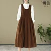 【ACheter】 森系溫暖燈芯絨夾棉加厚高腰顯瘦無袖背心洋裝# 126944 L 卡其色
