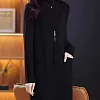 【MsMore】 中長款V領拉鍊造型背心寬鬆顯瘦連身毛衣# 127043 FREE 黑色