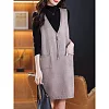 【MsMore】 中長款V領拉鍊造型背心寬鬆顯瘦連身毛衣# 127043 FREE 灰色