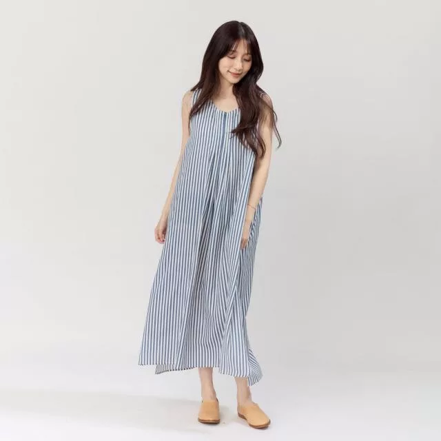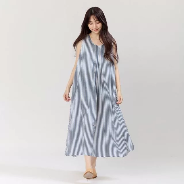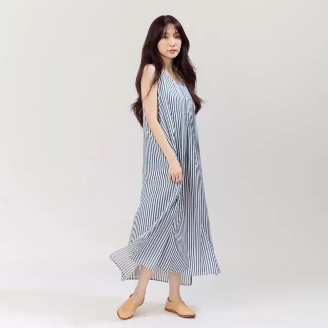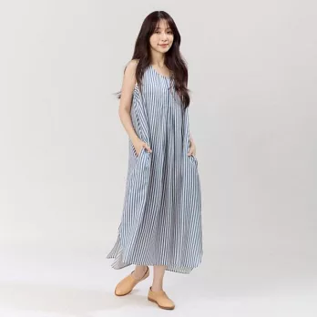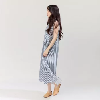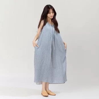 【AnZa】法式雙層棉紗吊帶連身裙長裙 FREE 海藍色